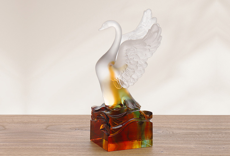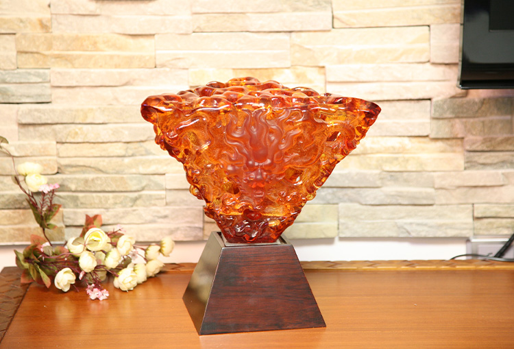 Karya seni kaca telah berkembang secara beransur-ansur daripada hadiah kraf tradisional untuk merangkumi perabot hiasan, budaya Buddha, pinggan mangkuk kristal dan barang kemas yang bergaya. Pangkalan pengeluaran syarikat terletak di bandar air yang indah dan makmur Jinxi di Kunshan, Wilayah Jiangsu. Ia mempunyai ruang penyelidikan dan pembangunan untuk pengeluaran kaca yang menjangkau 35,000 meter persegi. Kemudahan ini dilengkapi dengan keupayaan reka bentuk bebas, teknik pemodelan tanah liat, dan sumber penyelidikan dan pembangunan teknologi, menunjukkan kemahiran matang dalam kedua-dua proses pembangunan produk dan pembuatan.