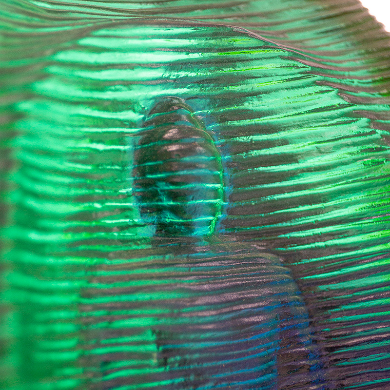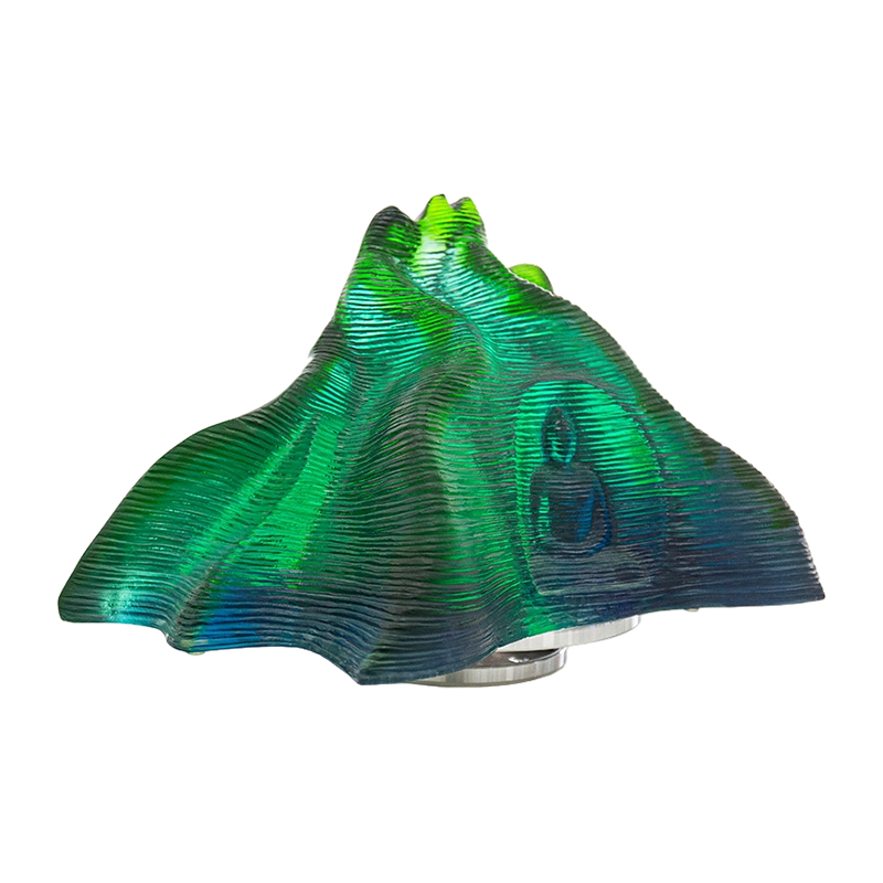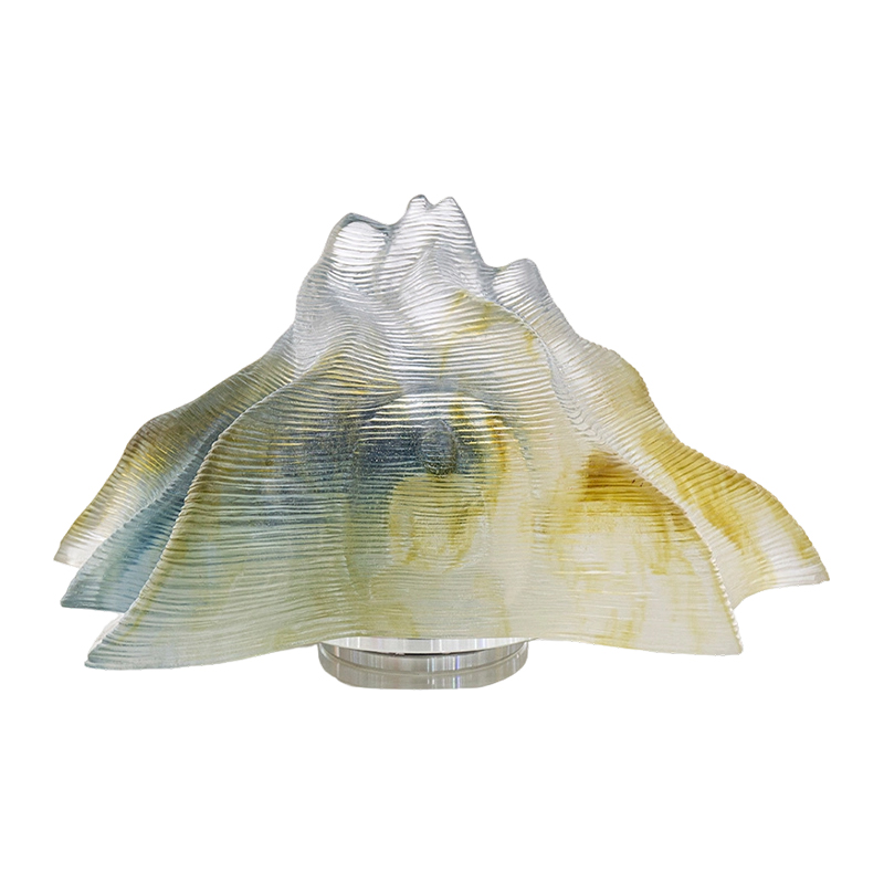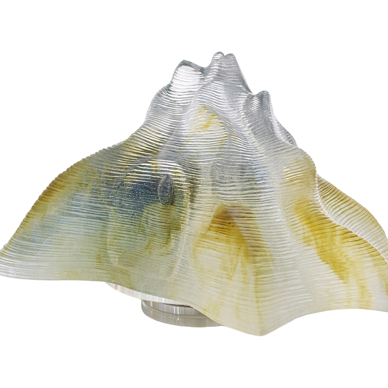 Sebenarnya, kerja seni kaca mengandungi buih adalah perkara biasa. Ini disebabkan oleh penggunaan teknik tuangan lilin hilang, yang secara semula jadi mengakibatkan kehadiran buih di dalam kepingan. Cara cahaya membias melalui buih dalaman ini mempamerkan daya tarikan unik bahan kaca. Ia menggambarkan dengan indah bahawa kaca benar-benar berfungsi sebagai wadah untuk cahaya.