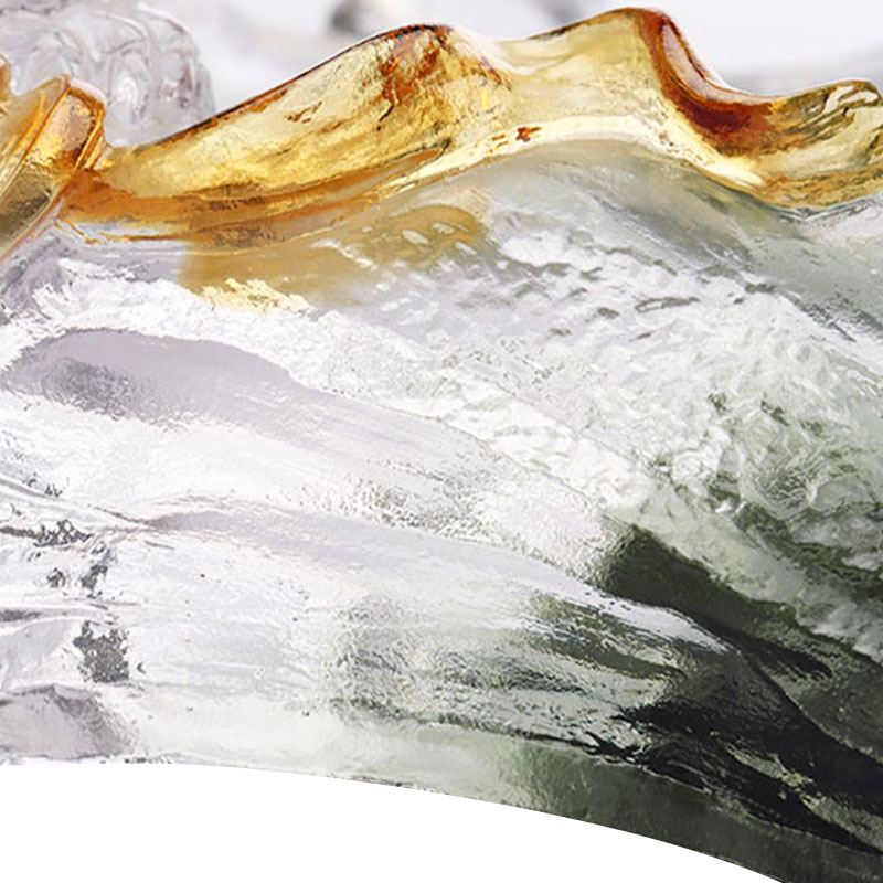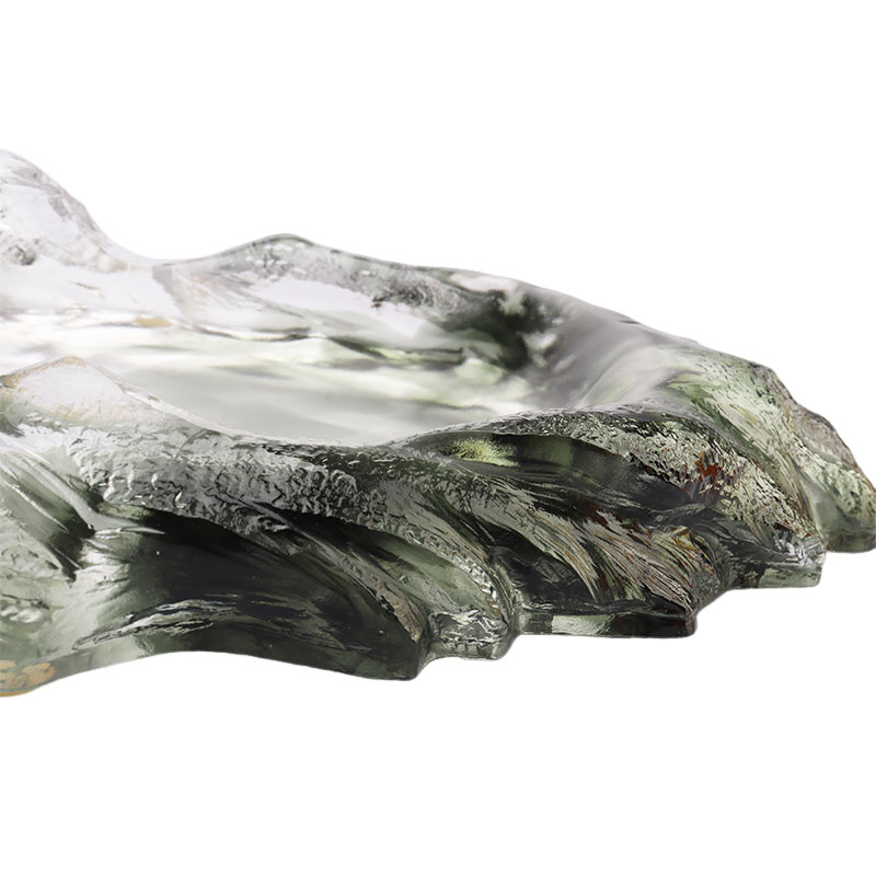 Pinggan buah kaca ini dibuat dengan teliti menggunakan kaedah lilin hilang purba. Pinggan buah berbentuk pinggan bujur, dengan pergunungan hijau gelap yang bergulung membentuk badan plat. Warnanya dalam dan sunyi, seolah-olah ia mengembunkan kedalaman dan misteri pergunungan dan hutan.