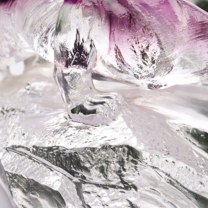 Sebenarnya, kerja seni kaca mengandungi buih adalah perkara biasa. Ini disebabkan oleh penggunaan teknik tuangan lilin hilang, yang secara semula jadi mengakibatkan kehadiran buih di dalam kepingan. Cara cahaya membias melalui buih dalaman ini mempamerkan daya tarikan unik bahan kaca. Ia menggambarkan dengan indah bahawa kaca benar-benar berfungsi sebagai wadah untuk cahaya.