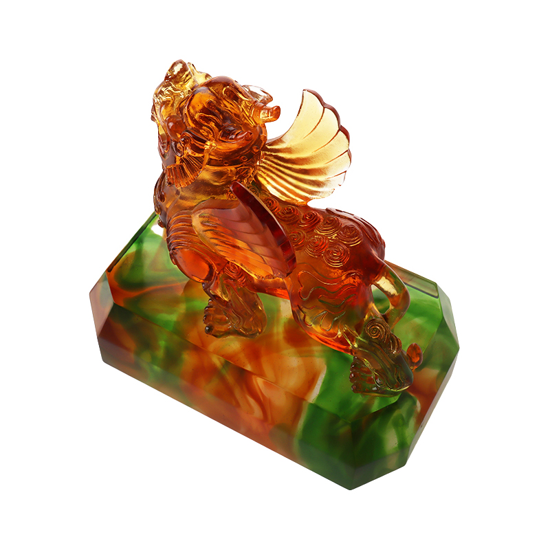 Dari perspektif ketukangan, tekstur kaca berlapis adalah jernih. Dalam karya ini, ketelusan dan kekilatan kaca kaca adalah, menjadikan imej binatang itu lebih tiga dimensi. Sama ada sebagai hiasan atau sebagai simbol budaya, binatang mitos sayu berwarna ini sudah pasti merupakan khazanah yang boleh menunjukkan rasa dan nilai seni. Ia adalah wajar menggabungkan kuasa misteri binatang mitos dengan keindahan sayu berwarna, yang menyenangkan mata.